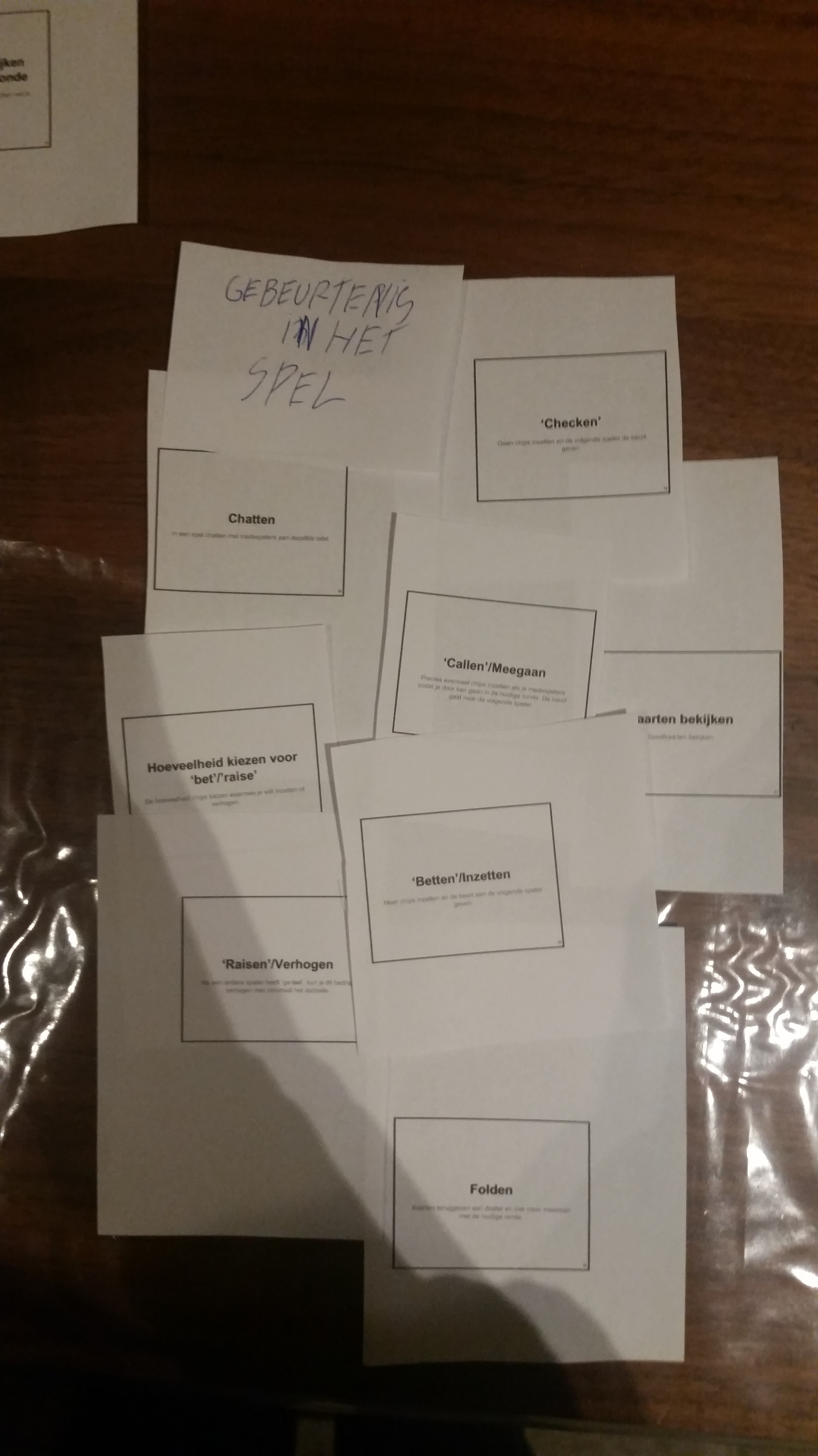 De speler moet zijn kaarten kunnen weggooien zodat je kan zien dat hij niet meer mee speelt deze ronde.