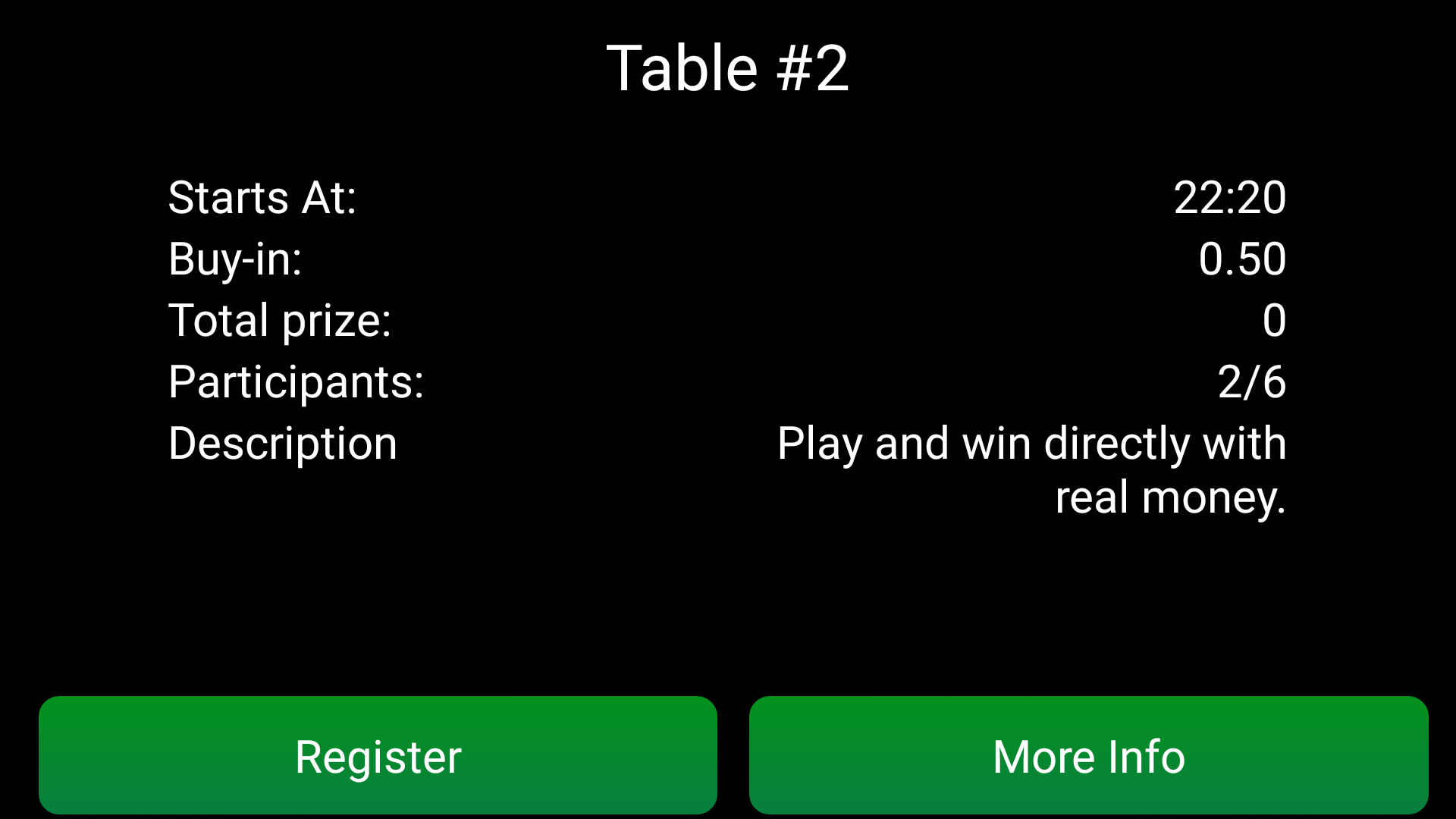 Wanneer een gebruiker een mogelijk geschikte tafel/spel ziet, kan hij erop klikken. Dan krijgt hij details van de tafel te zien. Indien de gebruiker de tafel nog steeds geschikt vindt, kan hij ervoor kiezen om aan het spel deel te nemen, maar als indien hij het spel niets vindt, kan hij teruggaan naar het overzicht.