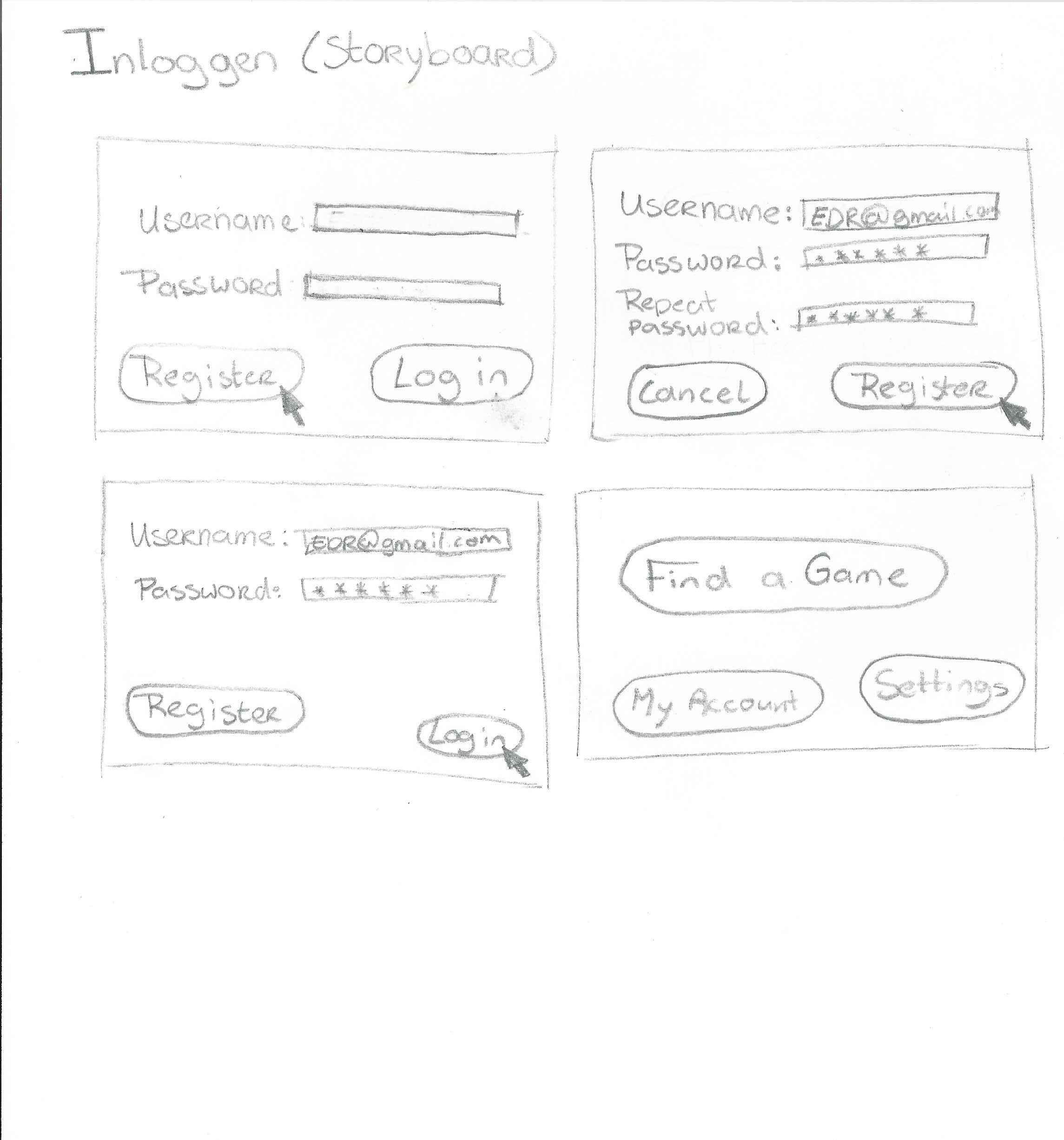 Als hij voor registreren kiest moet hij een aantal gegevens invullen die daarna gecontroleerd worden door het systeem. Als de gegevens gecontroleerd zijn wordt de gebruiker teruggebracht naar het inlogscherm. Nu kan hij inloggen.