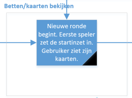 Wanneer de gebruiker heeft gekozen voor een spel en er een nieuwe ronde begint, komt er automatisch een speler aan zet. Deze speler moet een startinzet inzetten (bettten). Alle spelers krijgen hun kaarten te zien.